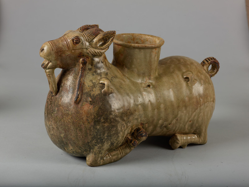 根据主办方公布的信息,南京博物院的展品包括清乾隆芙蓉石蟠耳盖炉、东汉初错银铜牛灯、东晋越窑青瓷山羊形烛台、南朝青釉瓷唾液壶、五代十国南唐拱立女陶俑、良渚文化玉俑、五代十国南唐持男陶俑、清末锡一品锅、大汶口文化彩陶钵。