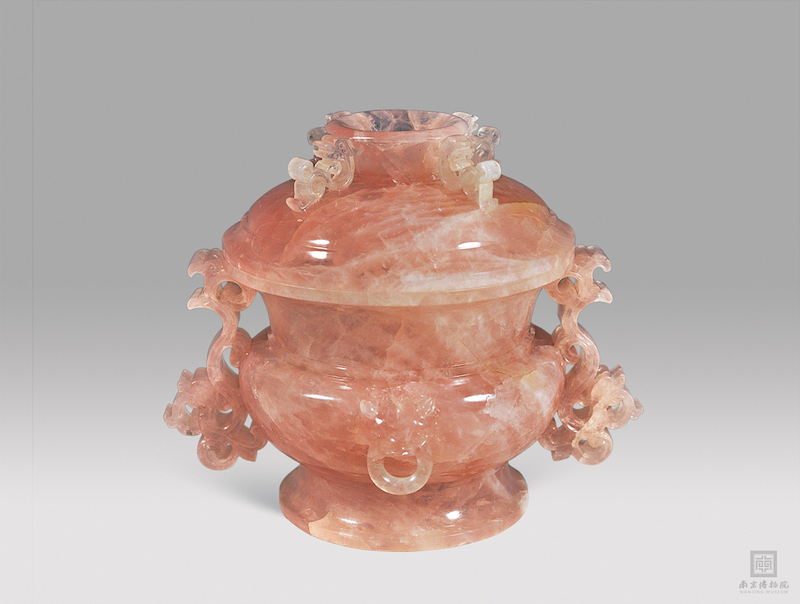 此外,在这次展览中,清乾隆芙蓉石蟠耳罩炉也是一件非常受欢迎的明星文物。盖炉是用一整块芙蓉石雕刻而成的,整体为粉红色,表面覆盖着不同长度和大小的自然线条。它的腹部两侧装饰着盘子和头衔环形耳朵,四个小盘子精心雕刻在屋顶上,栩栩如生。