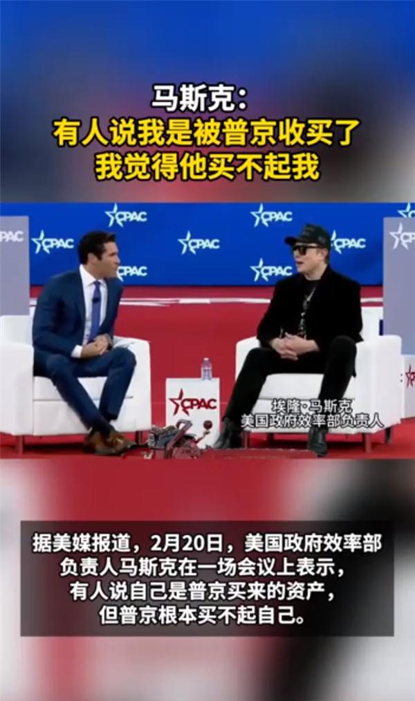 马斯克甚至直言不讳地说:“有人说我被普京买走了,我想说,他没钱买我。”