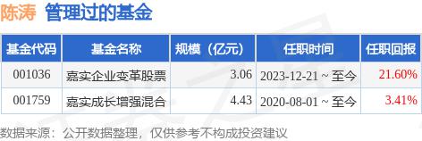 陈涛先生:中国国家,研究生,CFA,2015年,西班牙巴塞罗那德勤会计师事务所审计师 年 8 每月加入嘉实基金管理有限公司研究部,担任行业研究员。2020 年 8 月 1 从现在开始,我将担任嘉实成长和灵活配置混合型证券投资基金经理。2023 年 12 月 21 日本担任嘉实企业股票型证券基金经理。