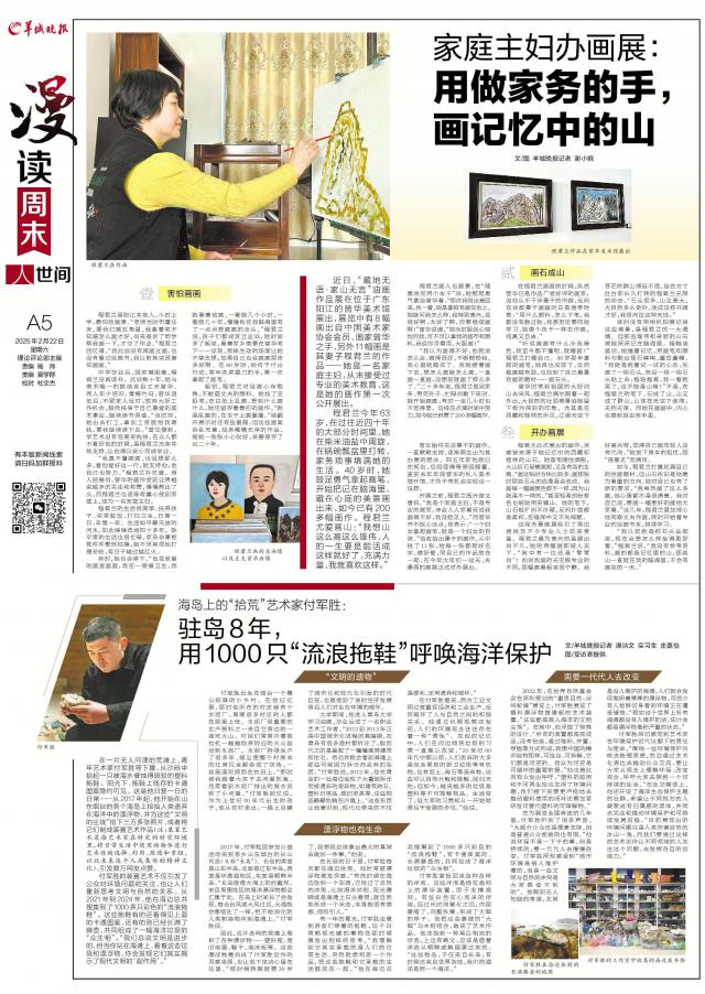 家庭主妇办画展:用做家务的手,画记忆中的山。