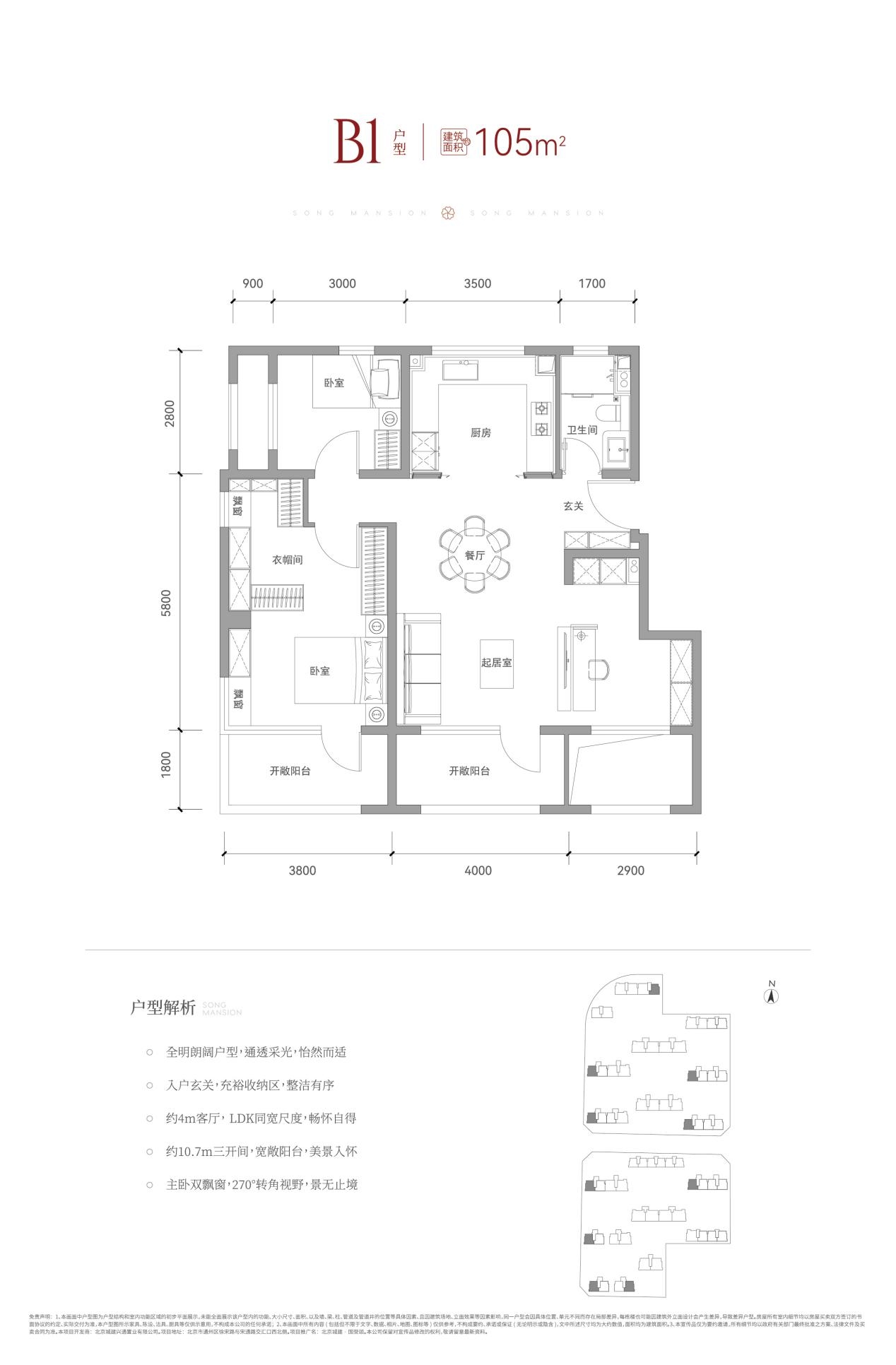 以105㎡以户型为例,通过侧凸窗、南侧空间等设计,超越同类市场约120个㎡房间类型,让家庭尽宽而居。