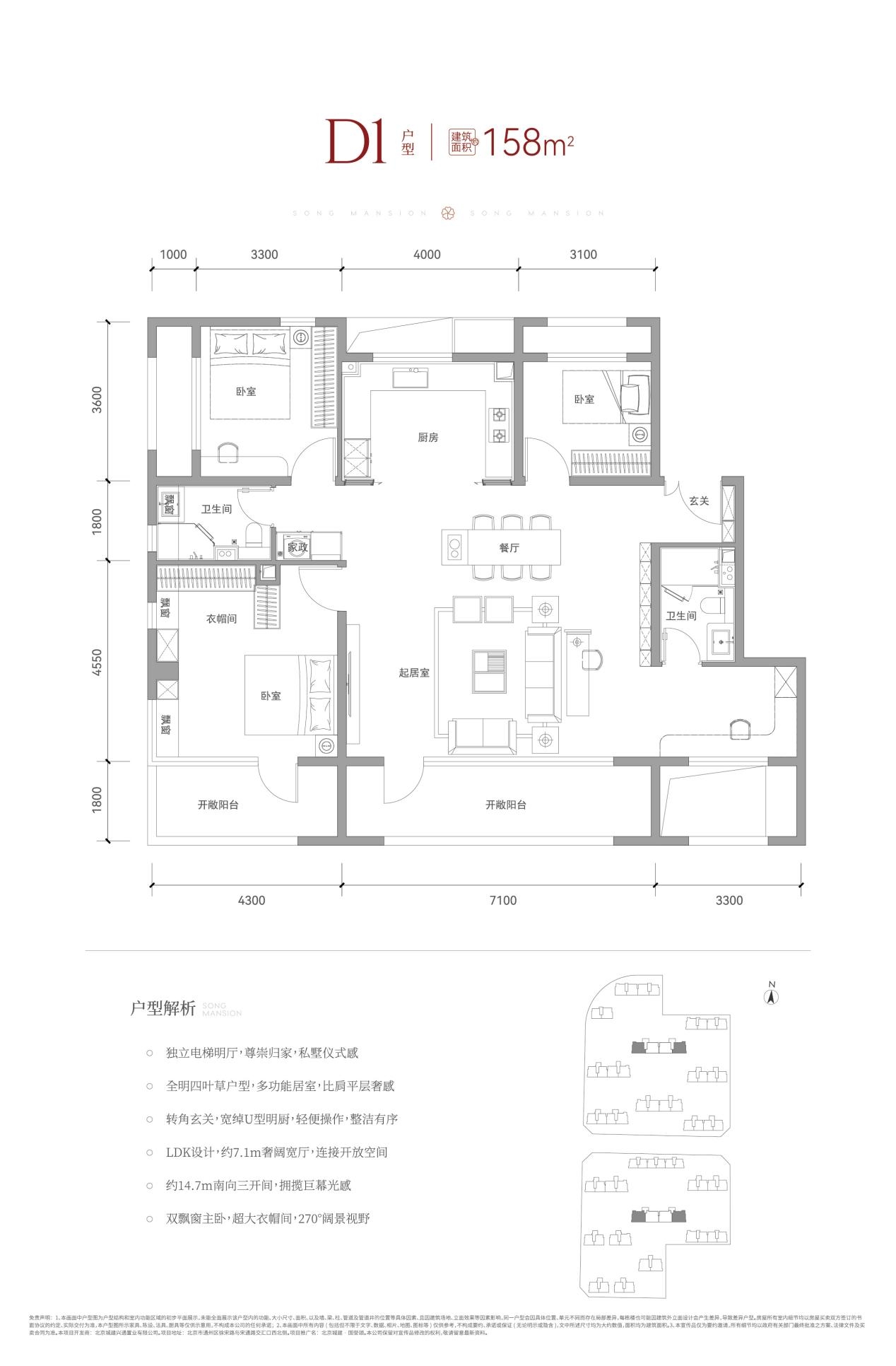 约158㎡超过同类市场184左右的极品四叶草户型㎡房型。LDKG一体化设计,大约7.1米的巨幕客厅,更是刷新了北京新的宽盘纪录。三面宽约14.7米,带来“大”家式系统——客厅、大阳台、大主卧,结合大型落地窗,一览窗外景观。深度阳台大约1.8米,主卧室270米°角落凸窗,双卧套房设计,多功能房间自由改造,满足整个生命周期的需要。