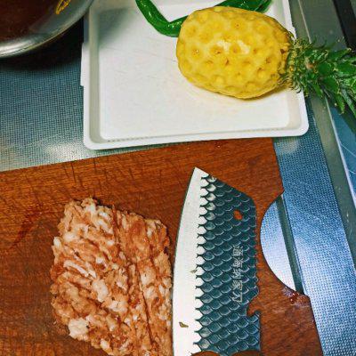 2、菠萝 辣椒 剁碎 大蒜也可以切片