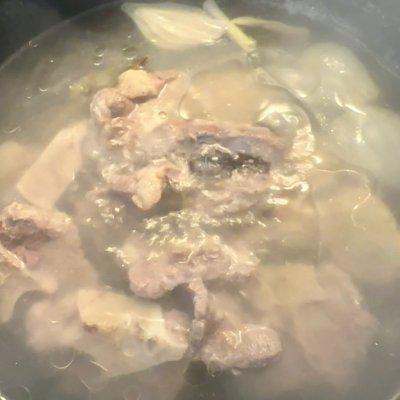 13、倒入刚煮好的汤汁,将蒜泥和苏子粉炖半小时