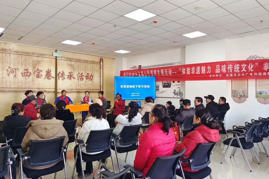 2月13日至21日,张掖市文化馆开展国家级非物质文化遗产项目《河西宝卷》继承活动,部分继承人演唱《仙姑宝卷》《莺歌宝卷》进行沟通交流。截至目前,已开展6期河西宝卷继承活动,参与人数超过400人。
