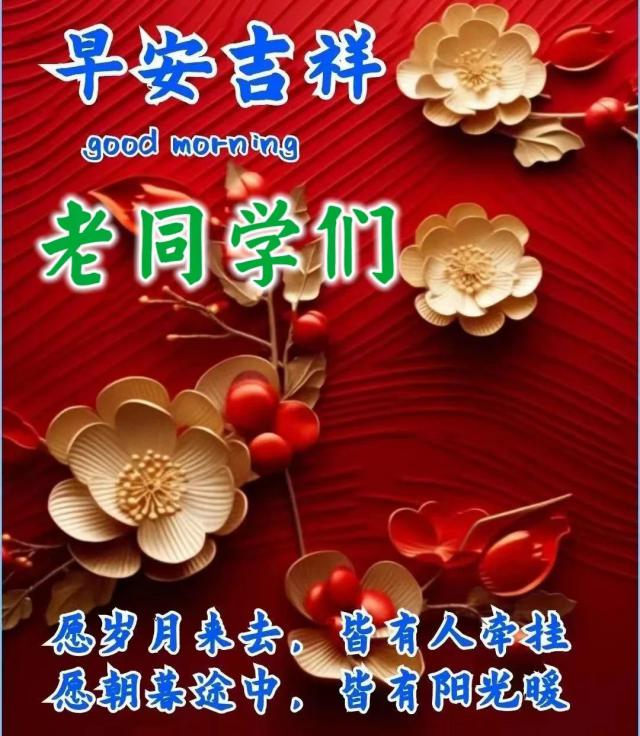 温暖的问候每天都送来;温暖的祝福每分每秒;送你好运和幸运,把所有的苦恼都放在口袋里。微笑很可爱,好运永远在那里。好运现在来了!亲爱的老同学,早上好!