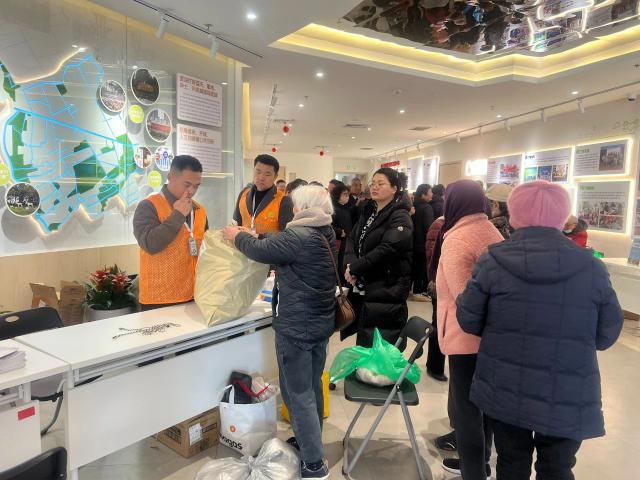 在活动现场特别设置的传统文化体验区,糖画艺术家手腕轻转勾勒出生动的属相图案,糖葫芦摊上飘来一阵酸甜的香味,吸引着孩子们的欢呼声。许多居民拿着造型独特的糖画在打卡墙前合影,为这个便民服务市场增添了不少喜庆气息。许多居民提着大包小包来到旧衣物回收区,用旧衣物进行公益交换。冬装 6 件或夏秋装 10 零件可以更换滴露洗手液 1 瓶,冬装 3 件或夏秋装 6 可以更换美加净护手霜 1 支。“主要想献出一份爱,还可以换取日用品,也是一个小小的惊喜。周女士说:“前来捐款的居民。