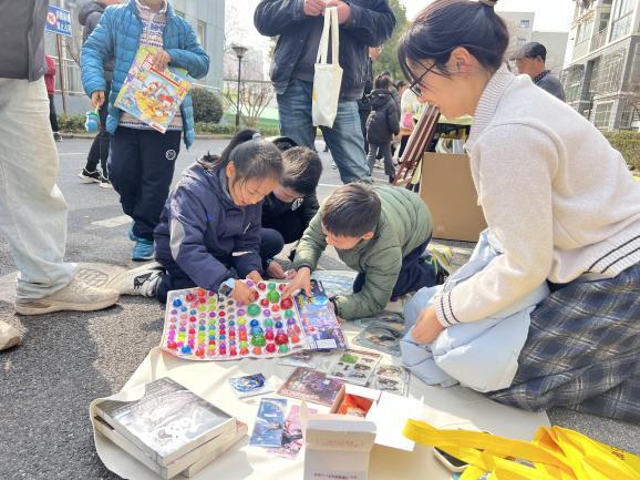 市场成果丰硕,回收了近280本旧书和13公斤左右的空瓶子。居民陈女士说,这样的“小而精”活动很有意义,因为她刚带着孩子看完《哪吒2》,没想到他在这里比在电影院还开心。如今,儿童教育在书本之外的“课堂”越来越丰富。今年,孩子们还参加了新虹街道的爱心寒托班,在现场看到了许多“老熟人”志愿者老师。