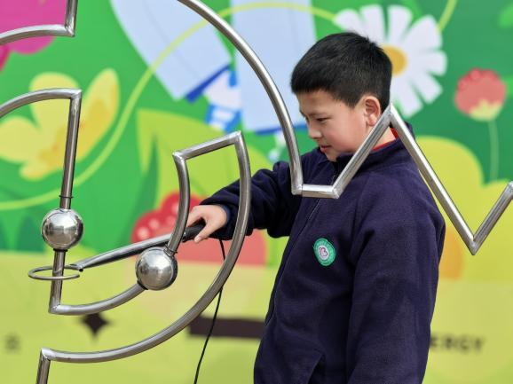 “游戏教学”让参与者通过现场互动游戏间接升级环保知识。“原来,完成一条川藏线相当于节省了一棵树20年的碳排放!”四年级学生小金坐在自行车装置上惊呼。