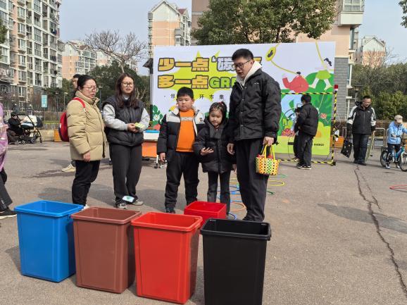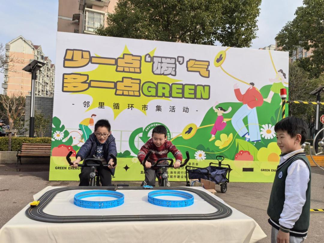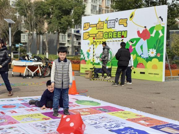 在市场现场,“低碳智能趣味”游戏互动区瞬间成为青少年的快乐世界。垃圾分类沙袋抛掷、“碳足迹”飞行棋清关、“自行车节碳争霸赛”等有趣项目精彩纷呈。