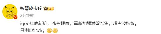 iQOO 15曝光:2K直屏+7000mAh电池+潜望式长焦