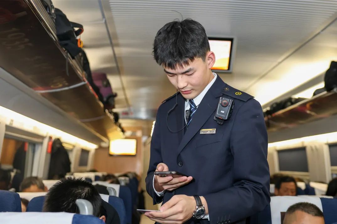 终端看起来像一部大屏幕手机,但它的功能远远超过一般的移动终端。它是保证列车高效服务和安全运行的“背后英雄”,通过无线网络与铁路后台系统即时连接,实现列车运营数据的秒级同步,提升乘务流程。