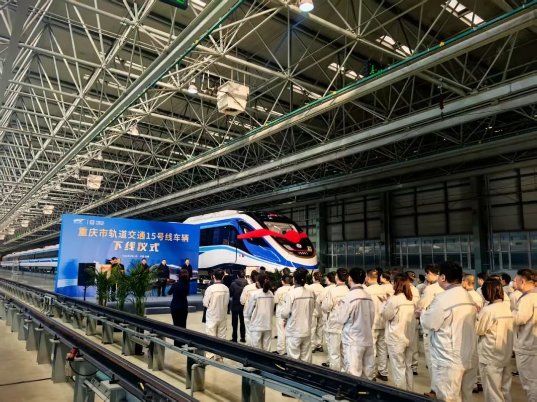 2月21日,重庆15号线第一列列车正式下线,由中国汽车长客打造的全国首列6辆编组城轨快线车。列车最大载客量可达2428人/列,是目前载客量最大的城市列车。