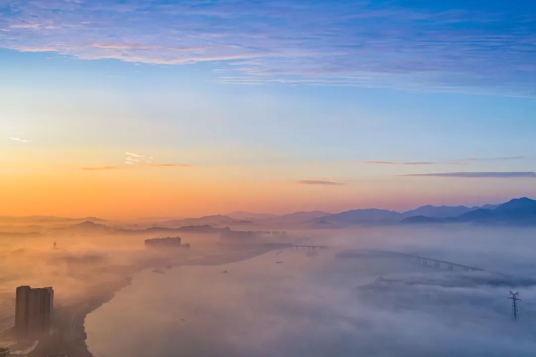 总是来萧山吧,看朝霞染红天空,余辉撒满山,光影交错,都是时间的运转和大自然的馈赠。