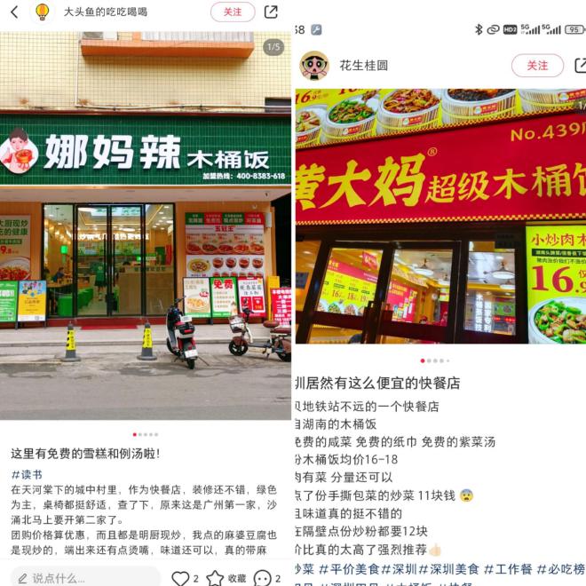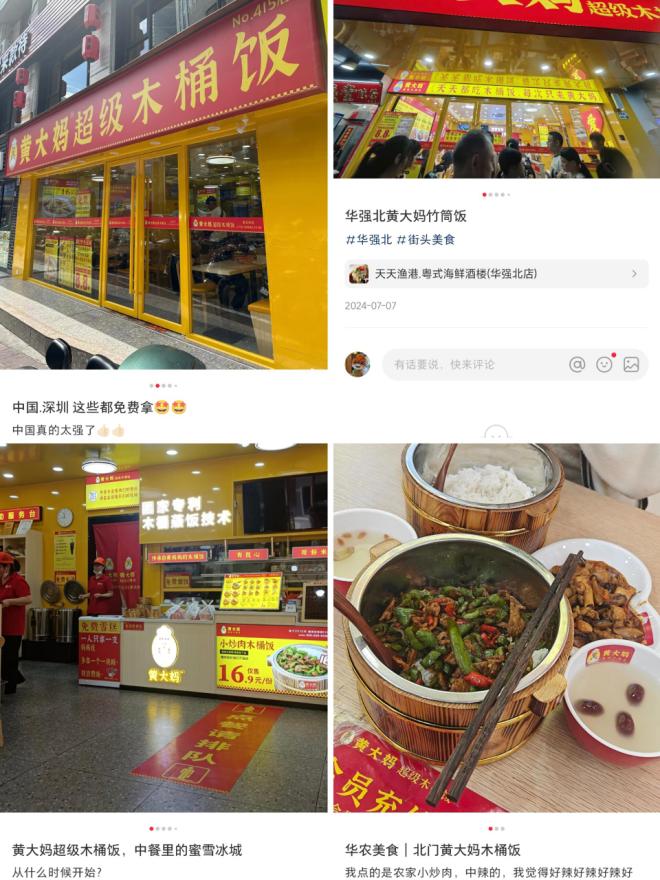 曾经因为“吃饭慢”、“伪木桶饭”而被抛弃的品类,现在已经变成了农民工的“食堂顶流”:黄大妈两年开了300家店,勇大厨单月新增店面超过50家。,还有一批新品牌带着“免费加饭”、“现炒锅气”、“田园风店”等标签席卷大湾区。