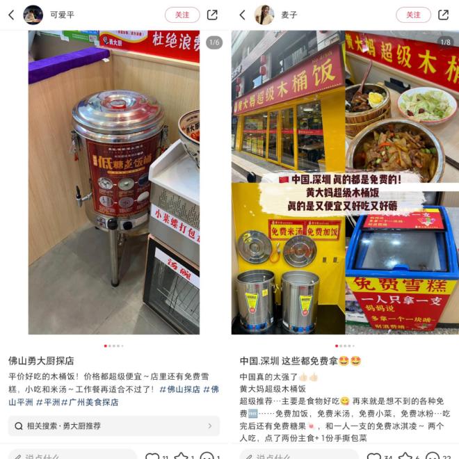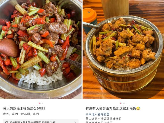 搜索需求的激增使得它在社交平台上获得了上亿的曝光率,抖音里的木桶饭话题的播放量高达8.7亿,关于笔记的小红书也比比皆是。
