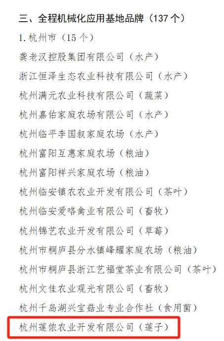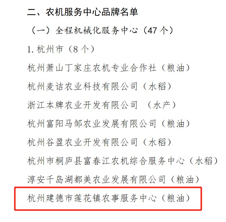 近日,省农业农村厅公布了农业“机器替代”优质发展品牌名单,其中杭州建德市莲花镇农业服务中心当选为全机械化服务中心,杭州莲农业发展有限公司当选为全机械化应用基地品牌。