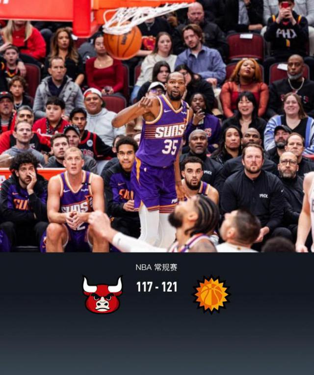 杜兰特27公牛,太阳121-117公牛 11 5,布克29 4 8