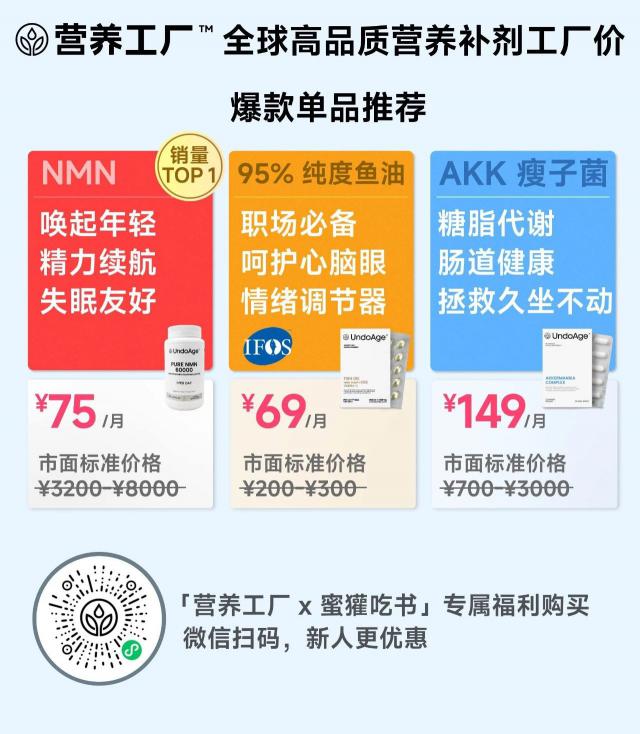 ✔️过了 25 年龄大,能量低,容易疲劳——第一个稳居营养工厂「销冠」的 NMN,提升 NAD ,从细胞根源延缓衰老,精力充沛,尤其是改善睡眠质量,改善皮肤甲。