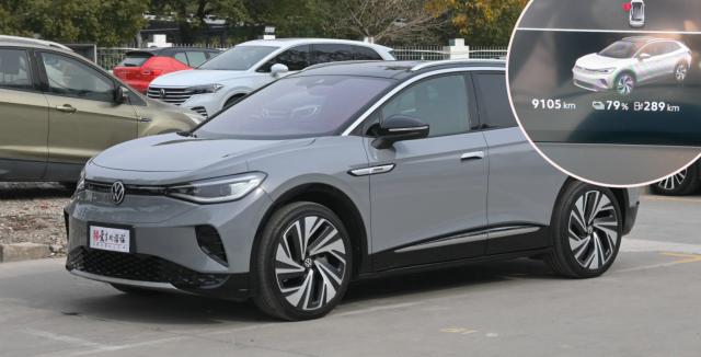 但今天这个 ID.4 有点特别,这不是上汽大众之前做的节目。 ID.4X,而是一汽大众的 ID.4 CROZZ,21 年 10 月亮上牌。刚进店的时候,这辆车只有 8800 公里,这几天让我拉了好几次,里程上升到了。 9100 左右了。