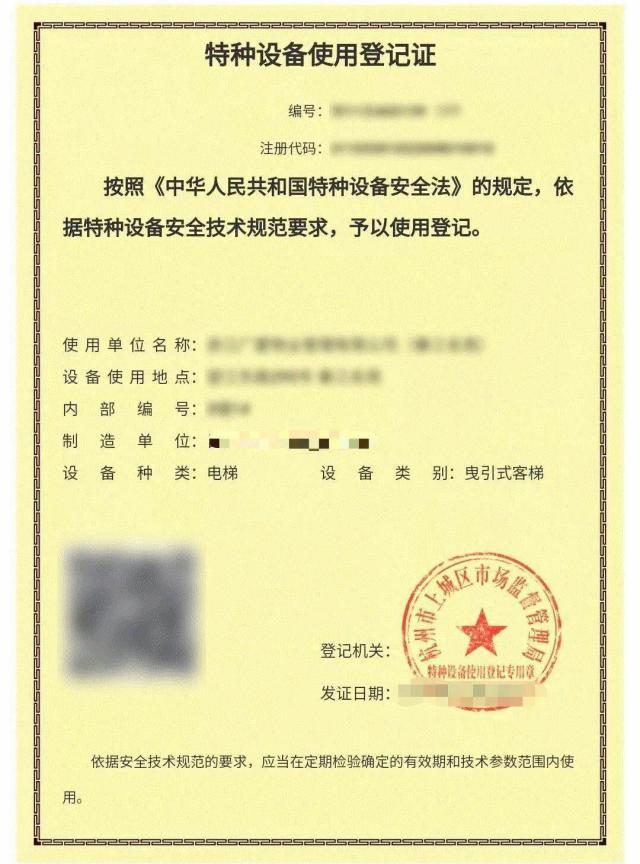 通过扫描《特种设备使用标志》中的二维码,可以获得电梯特种设备使用登记证,可以了解电梯的一些基本信息。