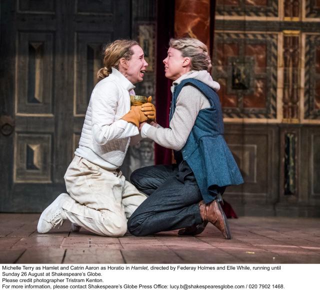由导演费德雷特执导的《哈姆雷特》 · 霍姆斯和埃勒 · 怀尔带领莎士比亚环球剧院团队制作,选择性别反转哈姆雷特和奥菲利亚两个重要角色。装疯的王子化着白脸红唇的小丑妆,吉尔登斯写信吞噬了聋哑人。独特的设定值得深思。
