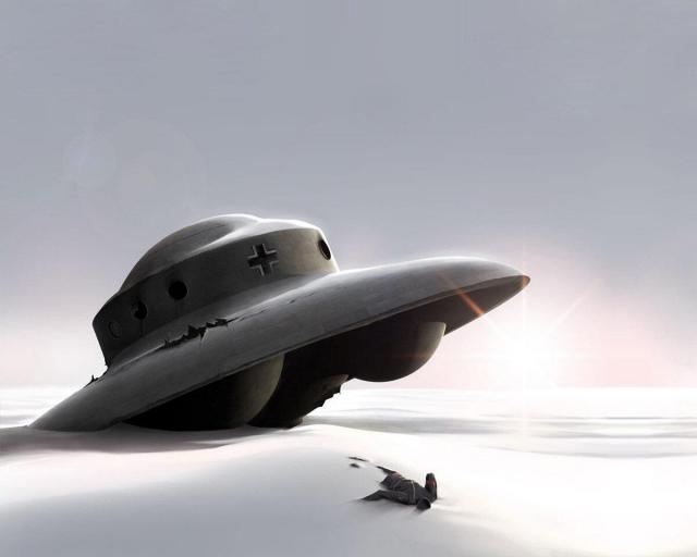有一种观点认为,具有超自然特征的碟状飞机在二战期间被德国秘密开发。虽然它们在欧洲战斗结束前没有完成,但它们在德国南极的基地防御中抵抗了美国海军。这种观点是基于 20 世纪 50 至 70 时代黄报中存在的虚假信息——当时被称为“假新闻”。但是这一说法已被完全反驳。