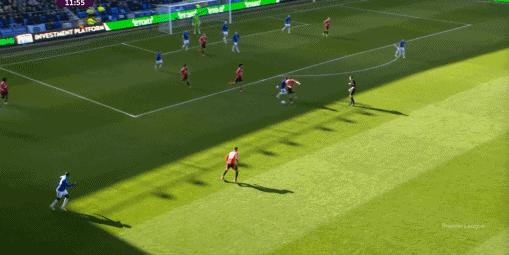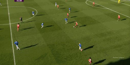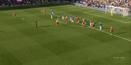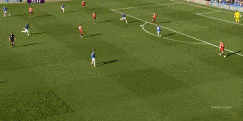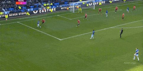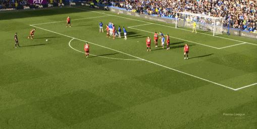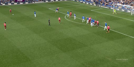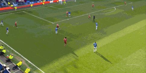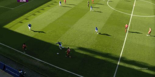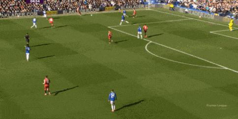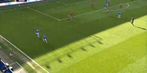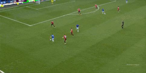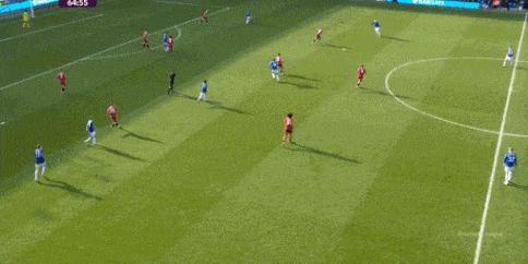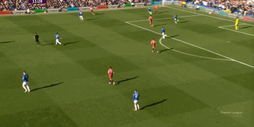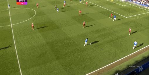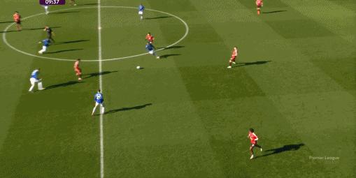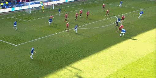 但是,你可以清楚地看到,埃弗顿仍然处于高位,而此时,加纳乔和多尔古在这里可以展示他们的特点: