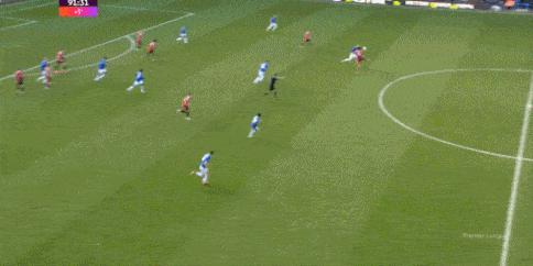 另外,就是体力下降之后,还是会暴露空间,就像前半场看起来一盘散沙的曼联,在比赛结束时还能打出这样的传切: