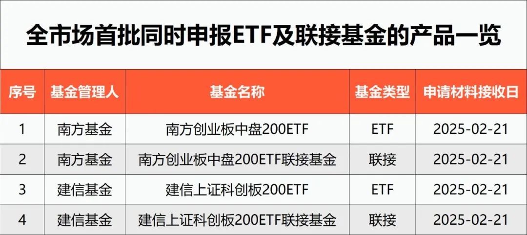 2月21日,南方基金同日申请创业板中盘200ETF及其连接基金。建信基金同日向科技创新200ETF及其连接基金报告,是市场上第一批同时向ETF及其连接基金报告的产品。