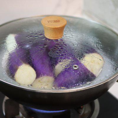 1、茄洗净切段,水开上锅蒸。 10 分钟