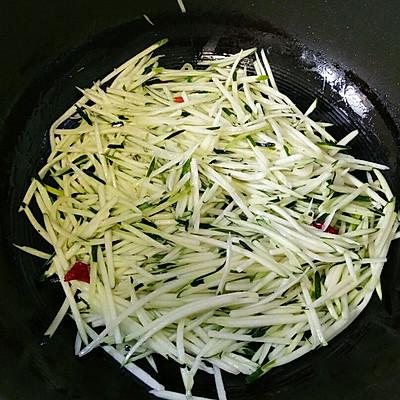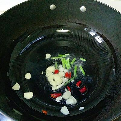 6、在炒锅中加入适量的油加热,倒入葱、蒜、干红辣椒段炒出香味。
