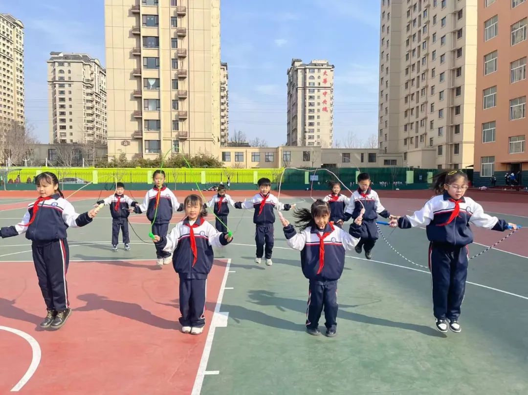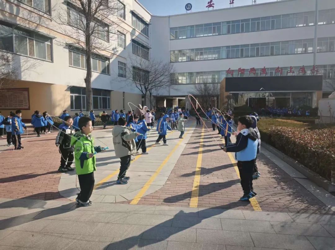 安丘市育华学校在课间跳绳。当铃声响起时,学生们带着苍蝇来到操场,开始了充满活力的跳绳活动。活动提高了学生的身体素质,帮助他们养成了坚持体育锻炼的好习惯。