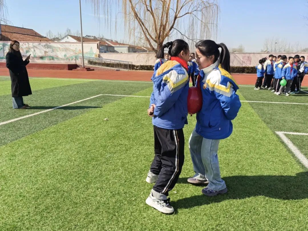 安丘市关王小学合理规划场所,安排老师指导。课间休息时,两人三条腿,运气球活动非常热闹。学生之间的默契配合不仅增进了他们的感情,也提高了他们的运动和合作能力。