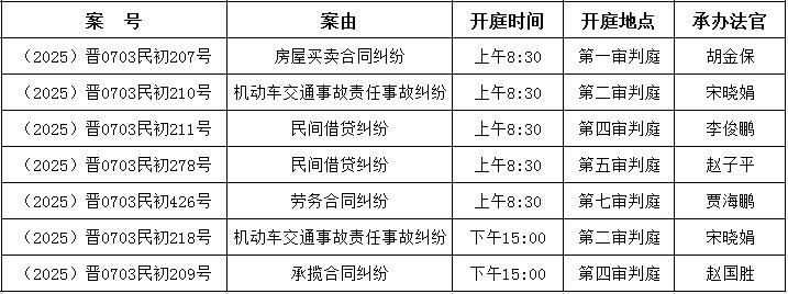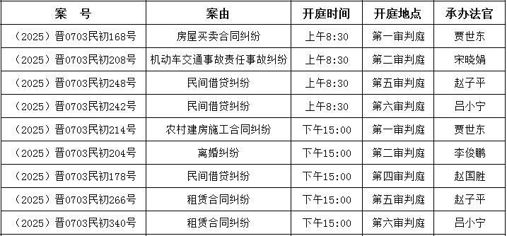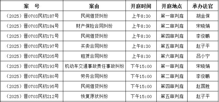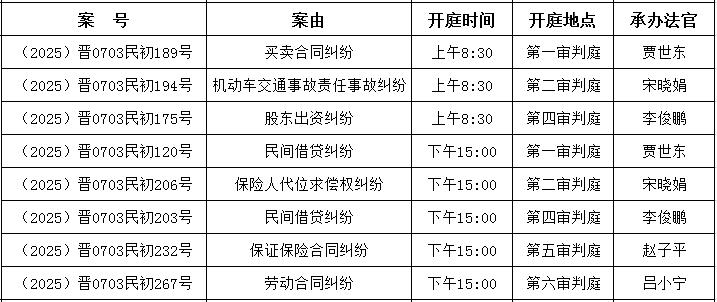 编辑整理了2025年2月24日至2月28日的审判案件。如果里面有你的案子,记得按时参加庭审;如果这里没有你的案子,有兴趣的朋友也可以带着身份证来参观。除了涉及国家机密、商业机密、个人隐私、当事人申请不公开的法律案件外,都是公开审理的。下列开庭信息是提前整理形成的。由于案件审理过程中可能会遇到调解、撤诉、延期审理等特殊情况,有时会对开庭时间进行调整。如果到时与实际开庭时间、地点不一致,则以实际情况为准。