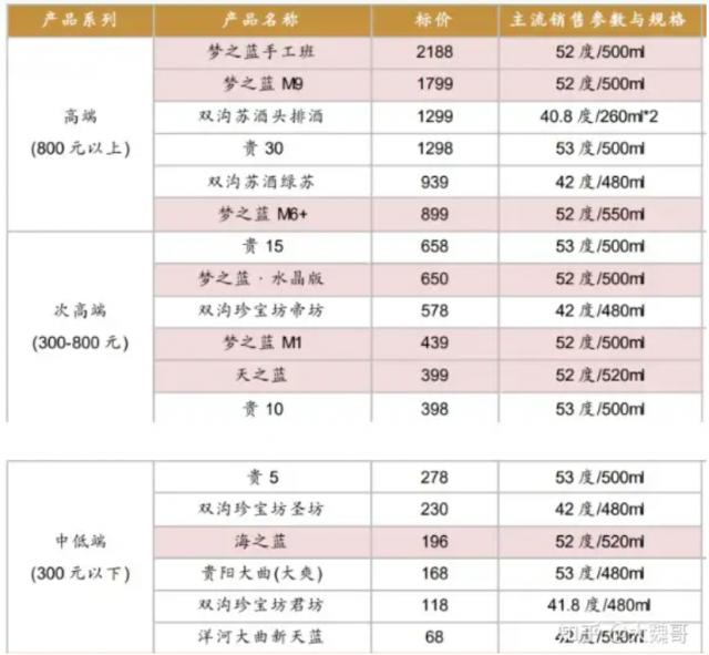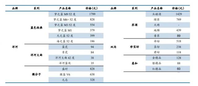 洋河老酒产品包括:海蓝、天蓝、梦蓝系列、洋河大曲、洋河蓝优、洋河窖龄系列、徽分子系列、敦煌系列;双沟老酒产品包括:苏酒、珍宝坊、柔软系列。
