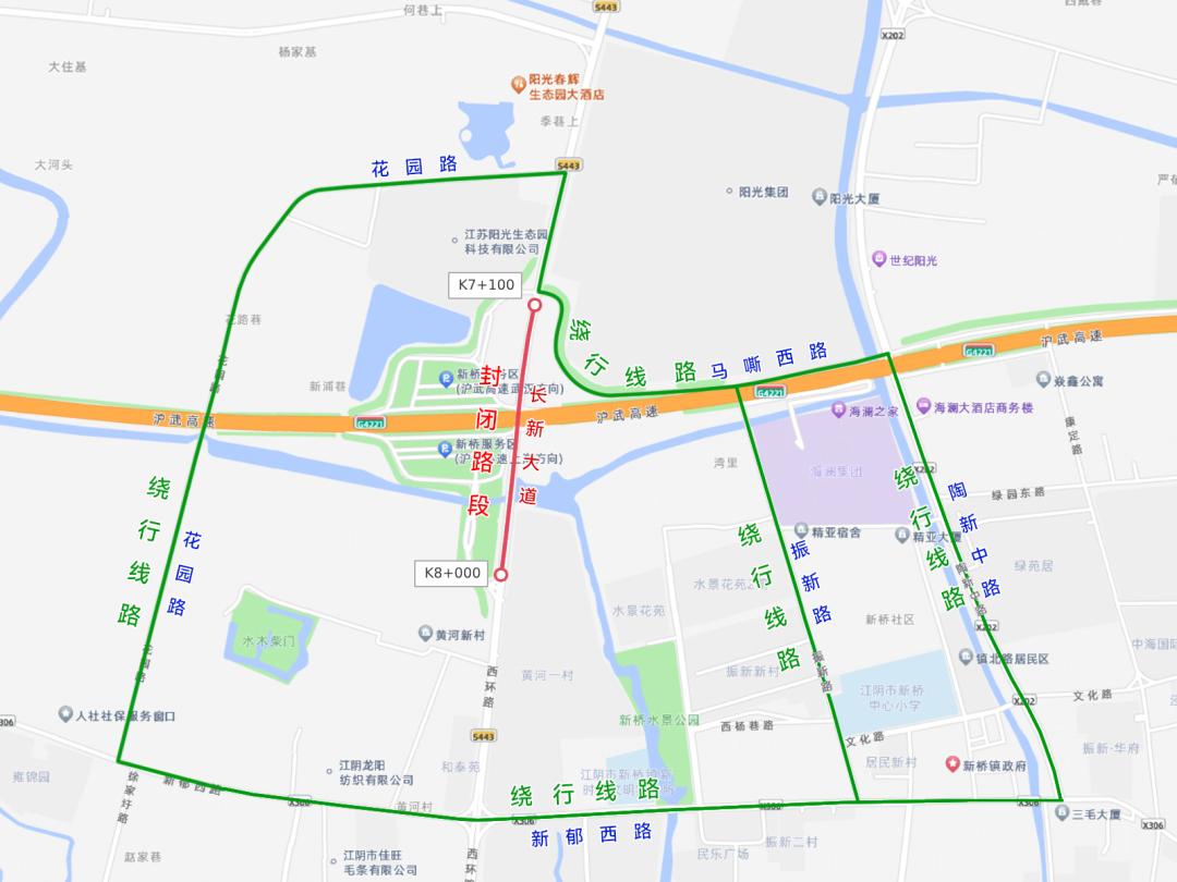 无锡S443由于沪武高速改扩建的需要, K7 100-K8 000西桥西环路-沪武高速公路交通双向中断。过往车辆和行人可以绕过花园路、新郁西路、振新路、陶新中路、马嘶西路等道路。预计施工日期:2025年3月1日至2026年6月30日。[详细信息]