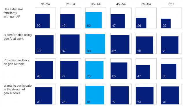 图 1:各个年龄段的员工都是对的 AI 的评价