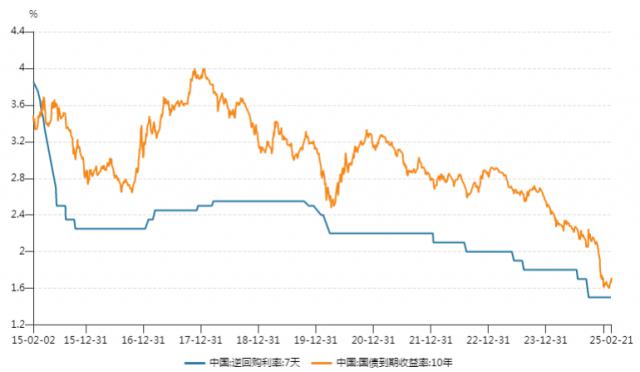 当下,10 年债收益率为 1.72%,接近 7 天期逆回购收益率 20bp。