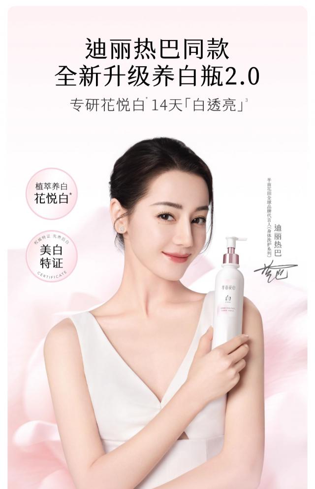在 2024 年末,半亩花田升级了代言人合作,正式宣布迪丽热巴成为半亩花田全球品牌代言人(身体护理系列),意味着磨砂、水光沐浴露、花瓣沐浴露等沐浴产品线也将迎来新的销量突破。