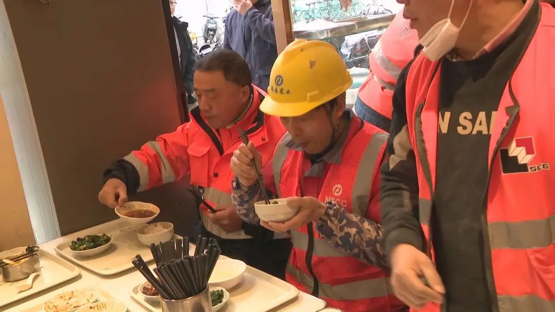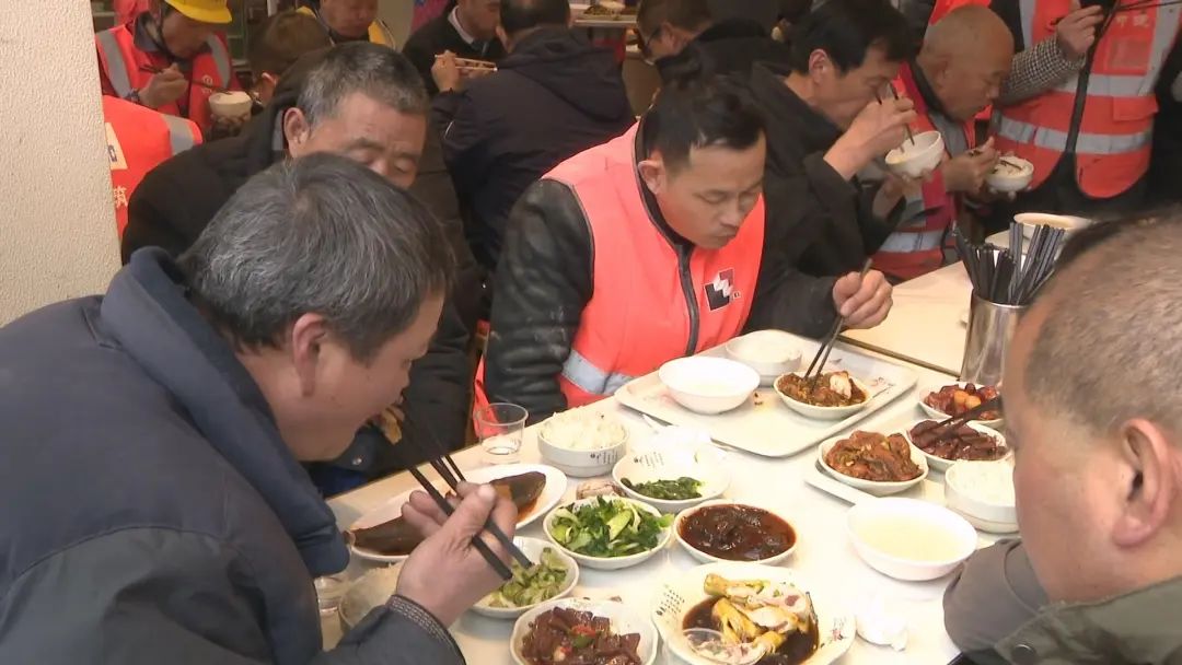 许多周边工地的工人点了两道菜,找个地方大口吃。有些食客还一起喝了一口。姬师傅告诉记者:“今天,我们三个一起做了一道菜,点了红烧鱼、葱油鸡、红烧茄子、辣猪血、葱油蚕豆、炒蔬菜和菠菜。一共65元,很便宜,味道也挺好的。”顾师傅对记者说:“这个地方实惠,卫生,干净,所以我们每天都来这里。以前我们在路边随便吃点东西,但是不卫生,有时候吃了肠胃不舒服。自从这儿开了以后,我们都来了。这里的工地上有1000多人,大多数人都在这里吃饭。”