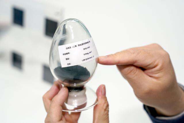 图为山海氢成品内嵌催化剂。/ 报告记者邢千里摄