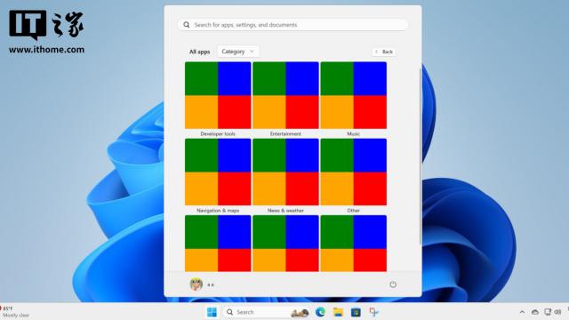 除此微妙的操作界面改进外,这两种新的菜单栏布局也会很快与用户见面。“所有应用”区域将增加两种新模式:网格模式和分类模式。网格模式以网格的形式显示图标,利用之前浪费的标准空间,不再逐一垂直排列桌面图标。