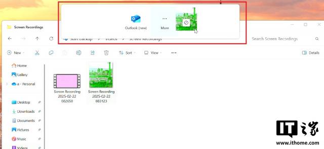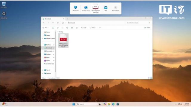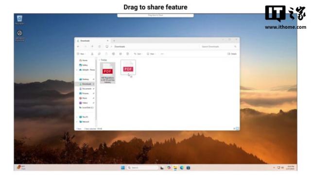 IT 世家 2 月 24 每日消息,微软正在开发一个新功能。用户可以将文件拖到桌面或文件资源管理器屏幕顶部使用。 Outlook、Phone Link 共享其他应用程序。以前,这个功能曾经在 2 月亮提前泄露,微软现在已经确定了这个功能的出现。