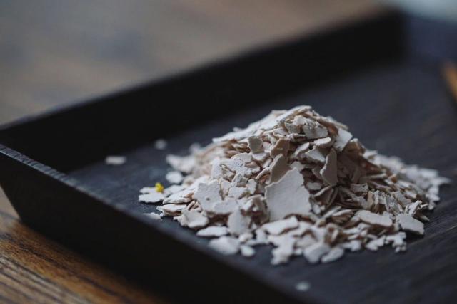 秋天鲜藕上市后,取出洗净切好,刨成碎片,然后加水磨浆,过滤出纯藕汁,沉淀后捞出晾干,得到滑滑细腻的藕粉。