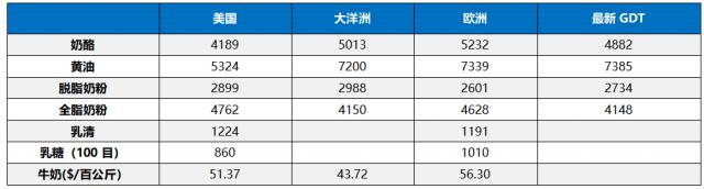 欧洲牛奶价格下跌,主要推动各品种下跌,减轻黄油下跌。