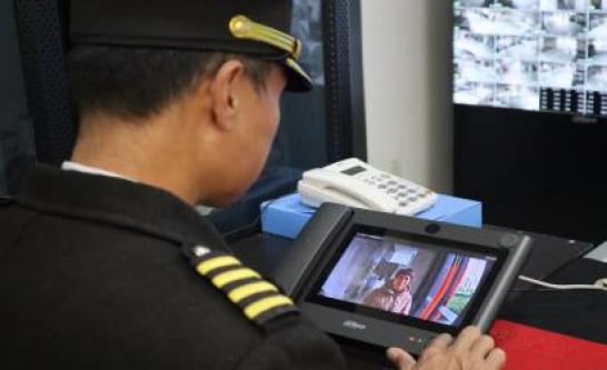 图为社区物业工作人员通过智能可视对讲系统满足业主需求。