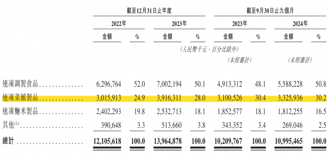 在净利润下降的同时,产品单价也在下降。根据招股书,公司主要经营的冷冻调配食品、速冻菜品、速冻面米产品的平均销售价格分别从2023年前三季度的13.8元/公斤、20.7元/公斤、10.8/公斤下降到2024年同期的13.6元/公斤、17.9元/公斤、10.1元/公斤。