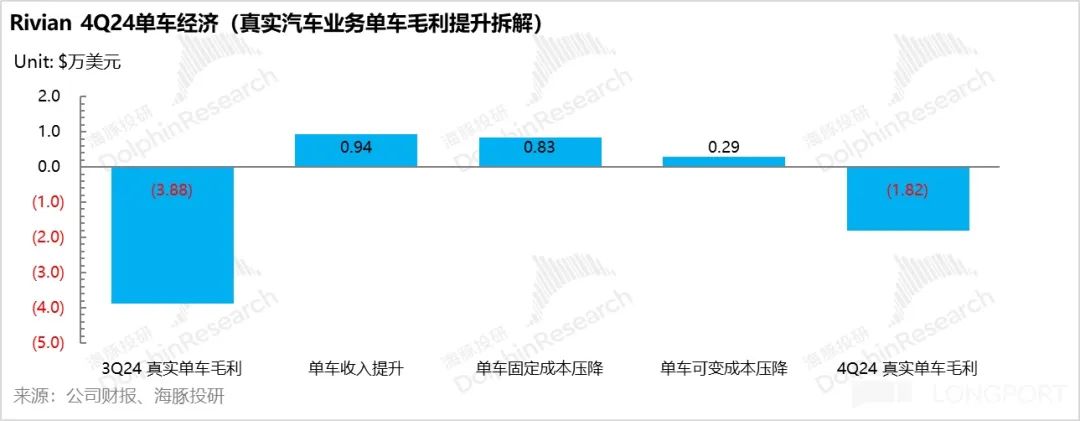 还记得 RIVIAN 此前反复强调此次 R1 升级,更换 50% 供应商,但是带来了 BOM 大大降低了成本(Rivian 之前预估 2024 Q4 相比 2024Q1 BOM 成本下降 20%)。